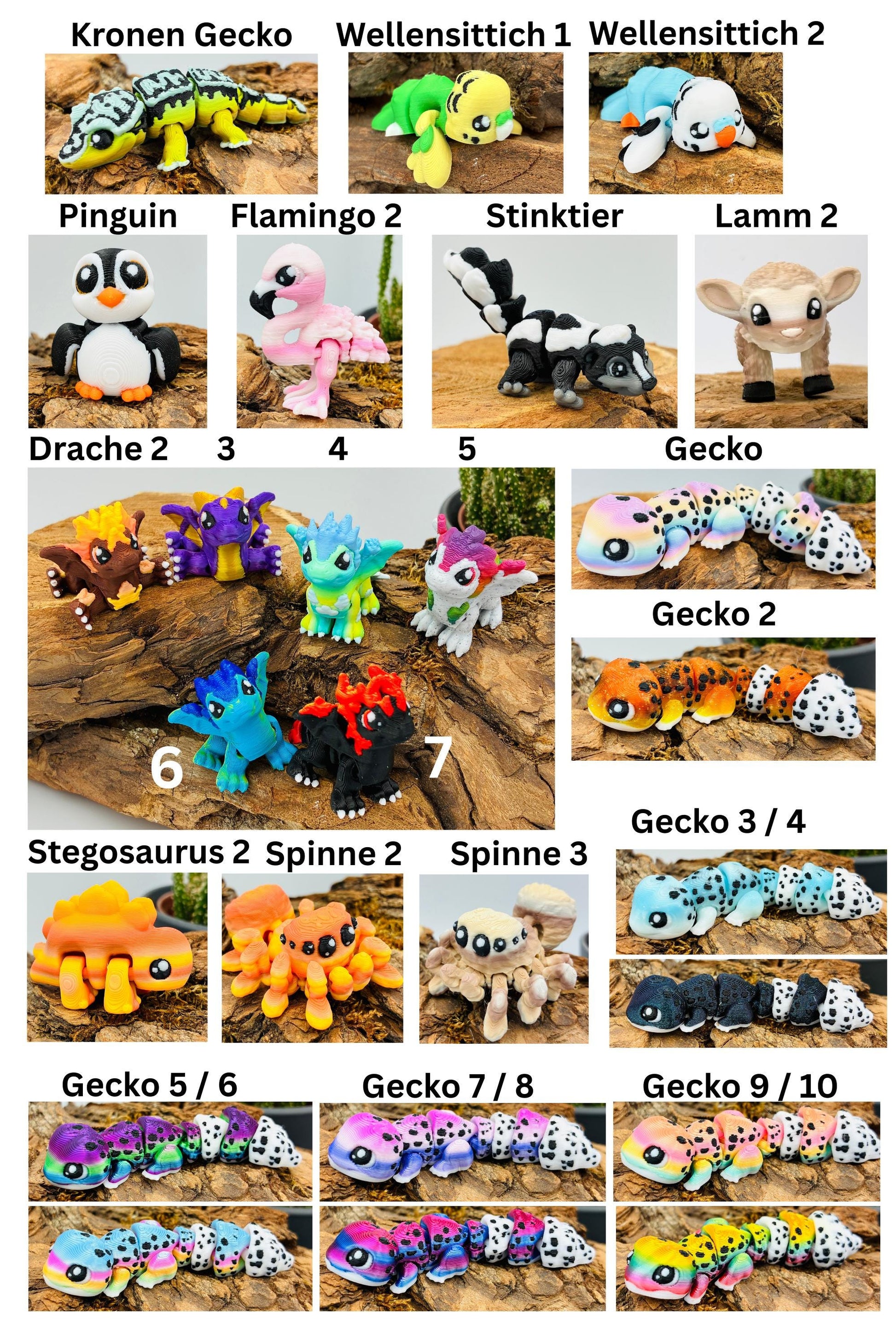 1.) 3D-gedruckte Mini-Tierchen ("Yordelz" 3,5–6,5 cm) – Wähle dein Set oder lass dich überraschen!